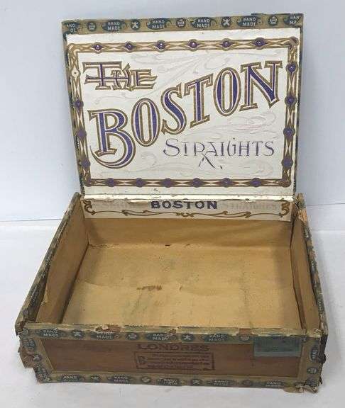 Wooden Cigar Box "The Boston Straights" - Does show some wear