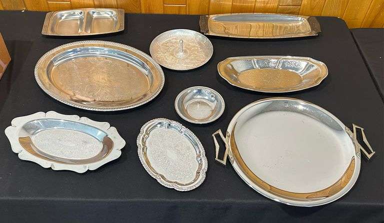 LOT 514 - Group of Vintage Silver Colored Serving Trays