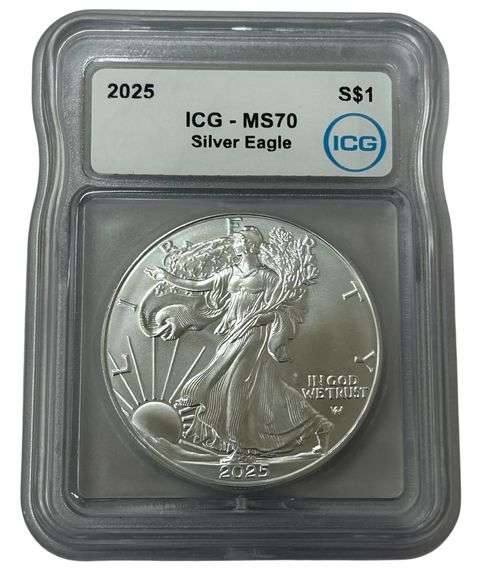 LOT 158 - 2025 $1 American Silver Eagle – ICG MS70