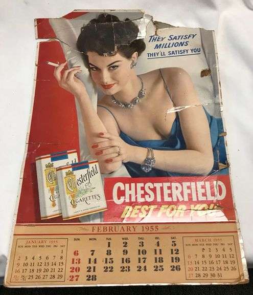 Chesterfield Advertising Calendar - Is in need of repair and is not complete - Selling AS IS - 19” x 13 1/2”