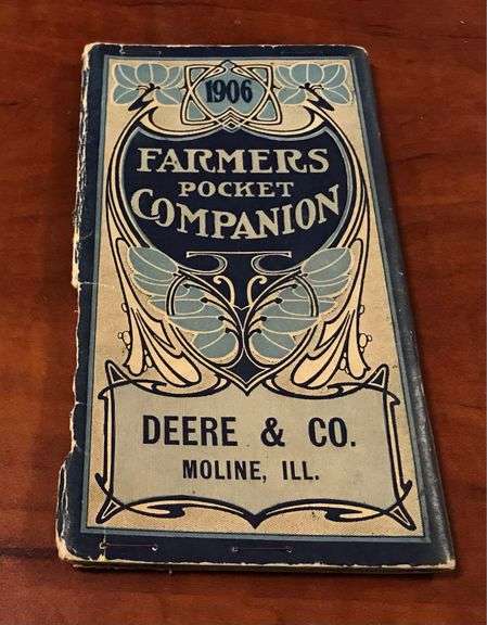 1906 John Deere Pocket Ledger - Inside back cover flap of this ledger is damaged. Booklet has a few written pages and some scuffing is noted.