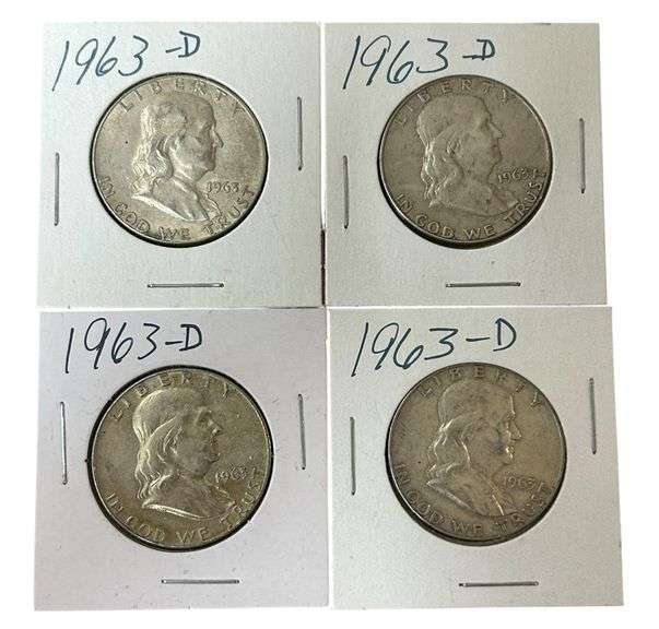 LOT 33 - (4x) 1963-D Franklin Silver Half Dollars