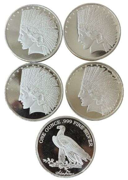 LOT 49 - (5x) Silvertowne Indian Head 1 Oz Silver Rounds