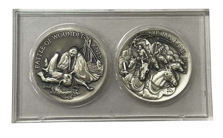 LOT 56 - Longines-Whittanauer Sterling Series Medallion Art - Wounded Knee & Oklahoma Land Rush