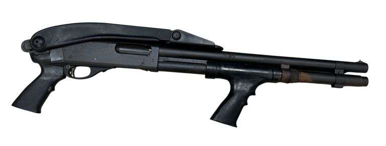 Pump action shotgun - 3” chamber - 18.5” barrel - SN: D904772M - has rusting throughout - folding stock - see photos