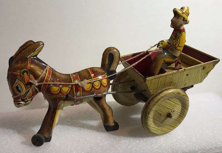 LOT 162 - Marx Tin Wind-Up Donkey & Cart
