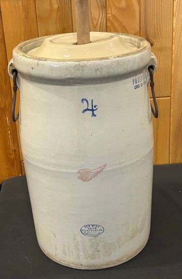 Four- Gallon Sized Redwing Churn w/ Small Wing - Normal age wear and scuffing — includes Lid & Wooden Stomper * No Shipping Local Pickup Only **