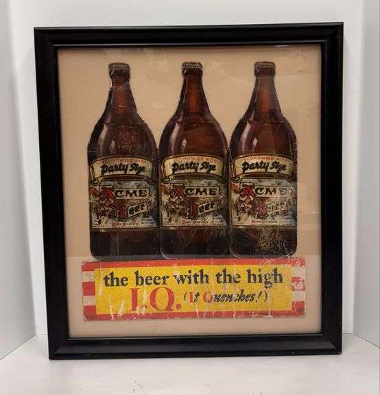 From the Acme Breweries - San Francisco, California. The cardboard sign shows some wear, but it is nicely framed in a 17 inch by 15.5 inch frame. Ready to hang in your collection