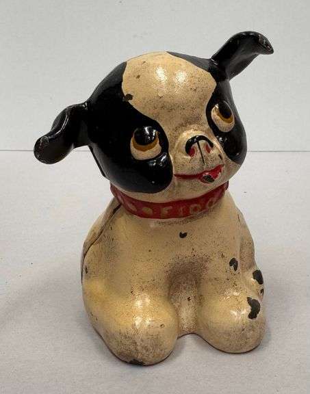 LOT 185 - Hubley Cast Iron "Fido" Sitting Dog Coin Bank - 5" Tall