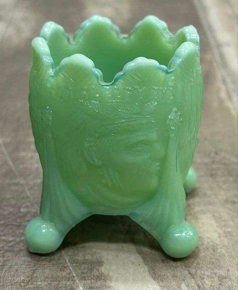 LOT 220 - Vintage Green Jadeite "Old Sleepy Eye" Tooth Pick Holder