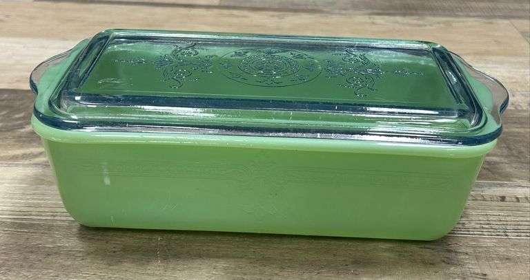 LOT 230 - Jadeite Fire King Philbe Loaf Refrigerator Dish with Lid