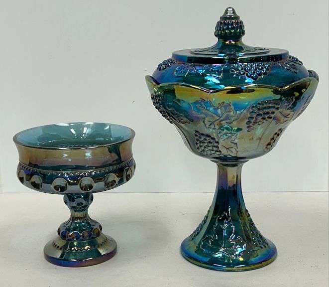 LOT 278 - (2) Blue Carnival Glass Pieces – Compote & Covered Candy Dish
