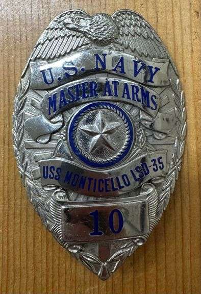 LOT 100A - US Navy "Master At Arms - USS Monticello LSD-35" Badge