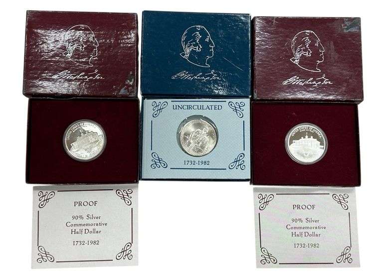 LOT 101 - (3x) George Washington Commemorative Silver Half Dollars - Proof & Uncirculated