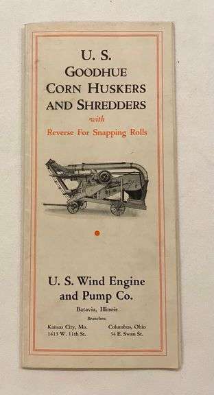 LOT 64A - U. S. Goodhue Corn Huskers & Shredders - Pocket Brochure - U.S. Wind Engine & Pump Co.