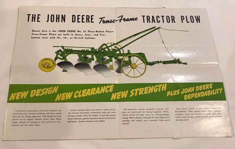 LOT 295 - John Deere Truss-Frame Tractor Plow - Direct Mail Fold Out Brochure